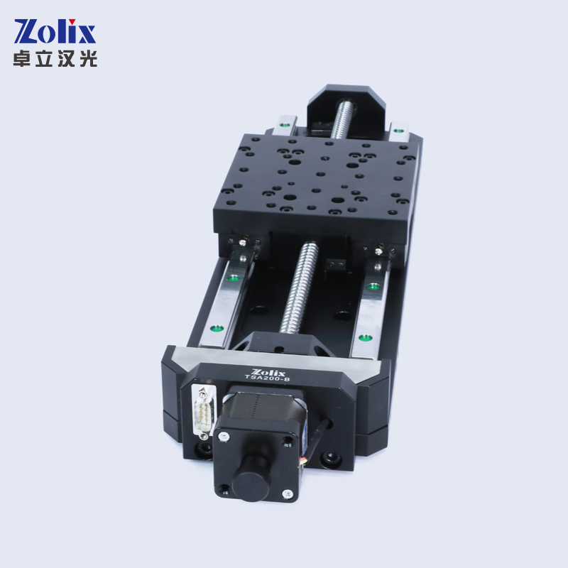 TSA-B series motorized linear stages employ linear slider guide, industrialgrade ball screw and high-quality shaft coupling unit contributes to high performance. A pair of mechanical position-limit switches(one at right end and the other at left end) and an origin-point sensor are all necessary parts to protect stages working well. It is easy for signal communications due to standard electrical and mechanical interfaces being used. Customers can operate the stages manually by using a hand wheel attached to the motor. This series of products offers standard installation holes which ensure the easy setup for multi-axis stages system. It also makes the combination with Zolix other products much easier. TSA-B series is most applicable of heavyloading and stable-running scenarios.